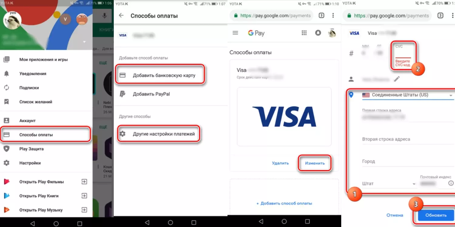 - остается только ввести CVC-код и нажать на кнопку «Обновить».